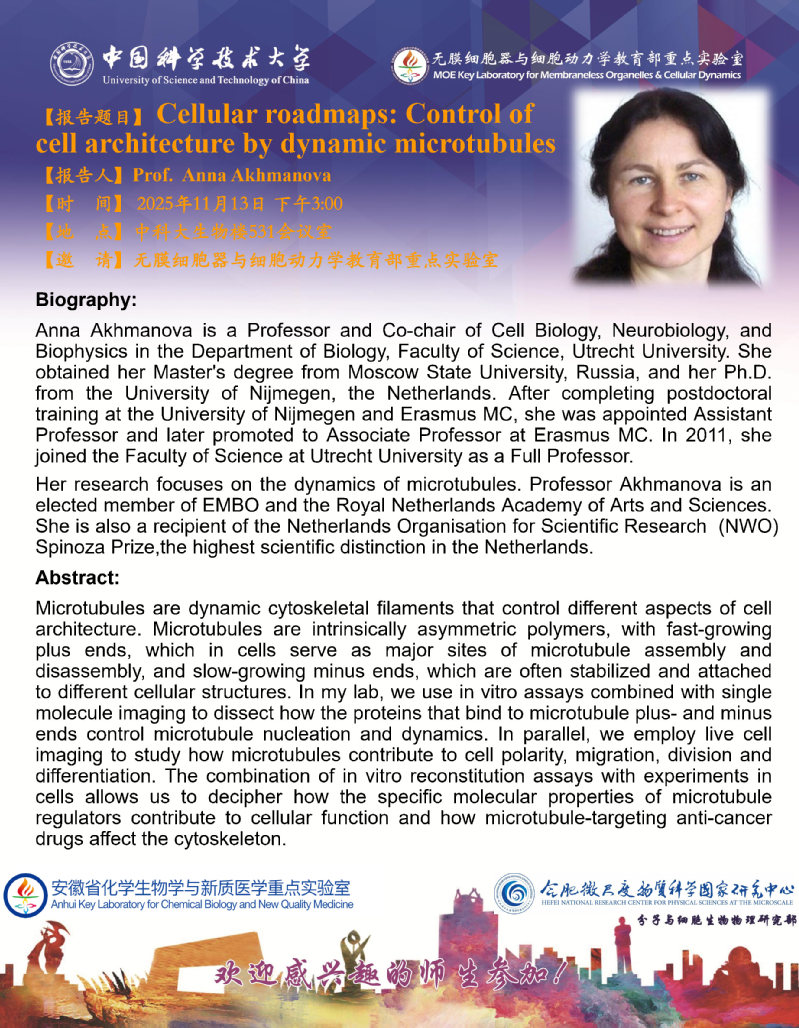 2025.11.13 荷兰乌得勒支大学 Anna Akhmanova 教授学术报告会